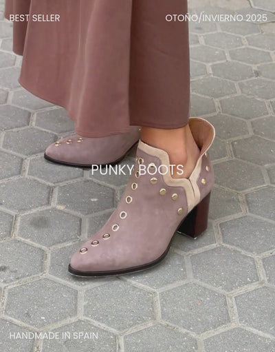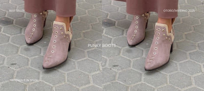 La joya de Micuir. Nacida del oficio artesano y el diseño español, Punky Boot es rebeldía hecha elegancia. Su silueta abierta, tachuelas doradas y acabados de piel hablan de carácter propio y atemporalidad. Un icono que se reinventa en más de diez variaciones, siempre fiel a su esencia: marcar cada paso con actitud y autenticidad.