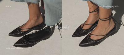 Clásicas con un toque distintivo. Las Nay combinan silueta abierta en el tobillo con ribetes de ante y tachas metálicas en forma de estrella, reflejando la artesanía española y un estilo atemporal. Versatilidad, carácter y sofisticación en cada paso.