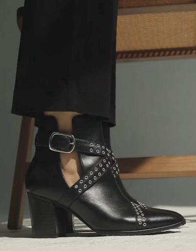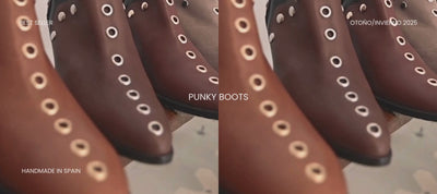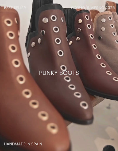 La joya de Micuir. Nacida del oficio artesano y el diseño español, Punky Boot es rebeldía hecha elegancia. Su silueta abierta, tachuelas doradas y acabados de piel hablan de carácter propio y atemporalidad. Un icono que se reinventa en más de diez variaciones, siempre fiel a su esencia: marcar cada paso con actitud y autenticidad.