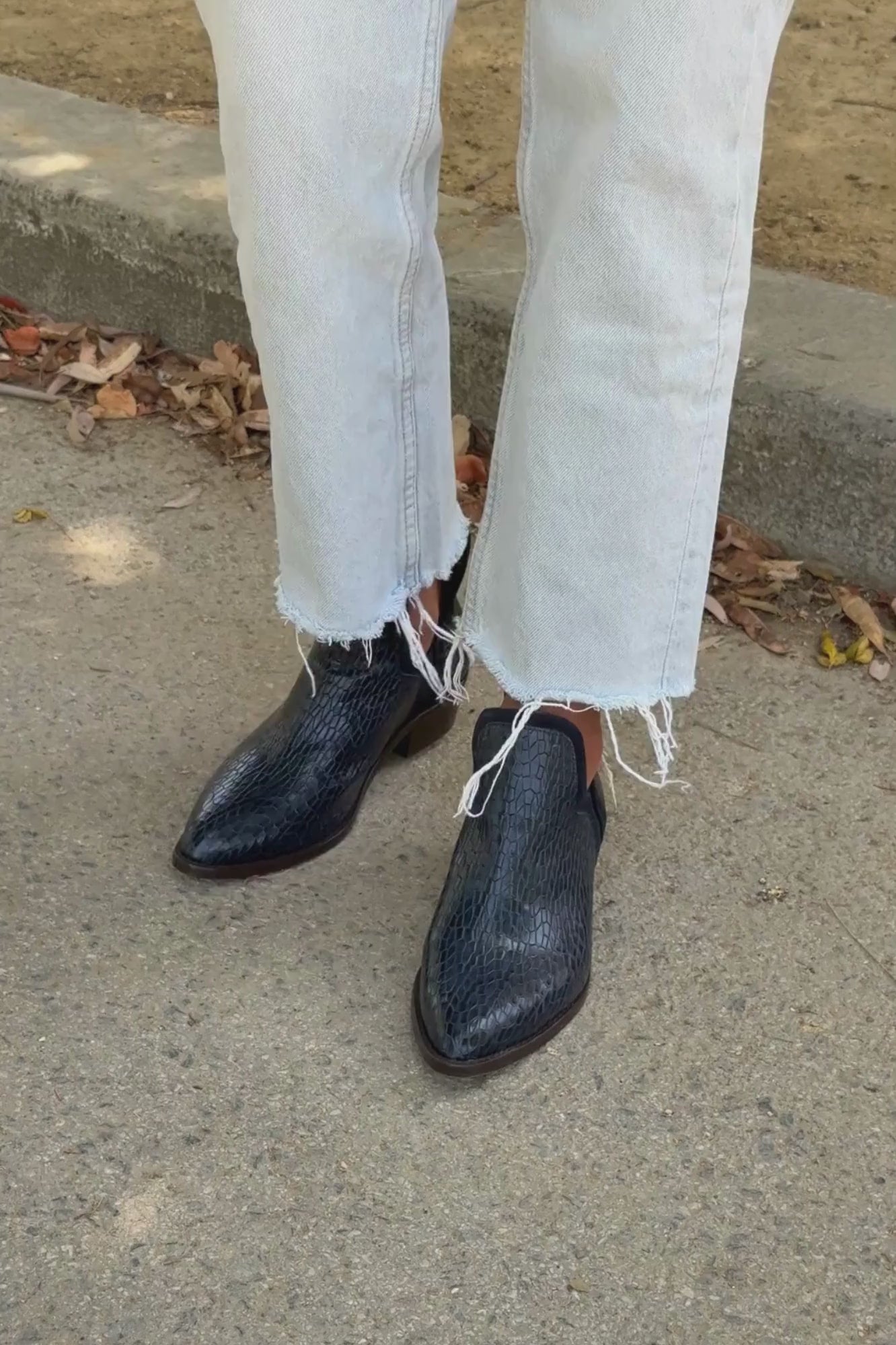 Our iconic Frida Boots in burgundy tejus-embossed cowhide leather are the perfect balance of timelessness and character. Open ankle silhouette finished with tone-on-tone suede trim for a versatile finish. Features a 4 cm high heel with micro-gel insole for comfort. Lining and insole in tone-on-tone mestizo goatskin leather and insole with ''handmade in Spain'' certificate with fire engraved logo. Includes a cotton bag. Designed and handmade in Spain.