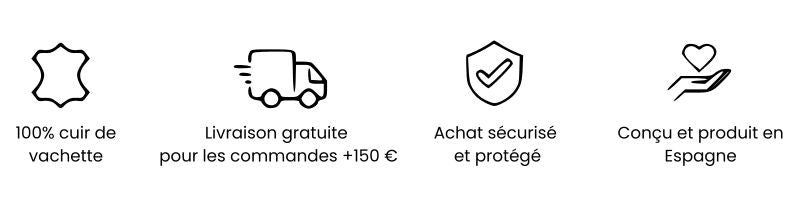 Sélection de cuirs haut de gamme , tannés en Espagne avec un contrôle de qualité rigoureux.