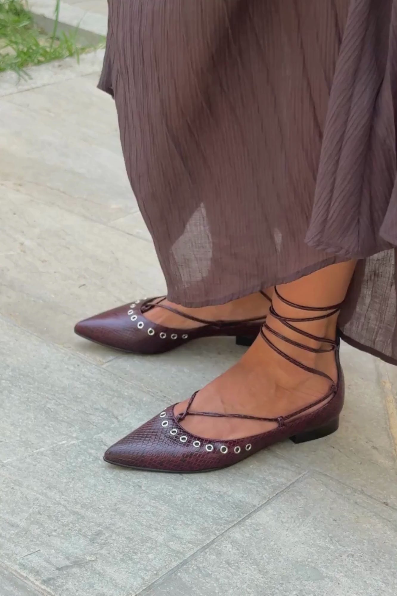 BAILARINA LACE UP SNAKE BURDEOS 2CM