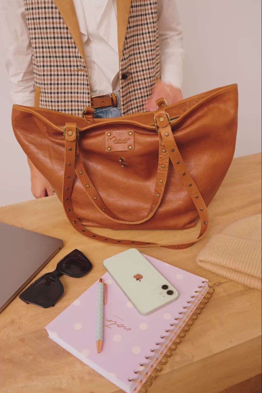 Nuestro icónico bolso capazo en piel vacuna cuero es el equilibrio perfecto entre atemporalidad y carácter. Diseño amplio con doble asa de hombro y otra regulable desmontable bandolera adornadas con tachuelas metálicas en tono oro envejecido lo que marca la esencia Micuir. Pieza de piel con logo Micuir grabado con tira para cierre. Cremallera metálica en su interior, forro de algodón a tono con bolsillo interior de cremallera. Acabado premium con cantos pintados a mano. Incluye una bolsa de algodón. Diseñado y fabricado artesanalmente en España.