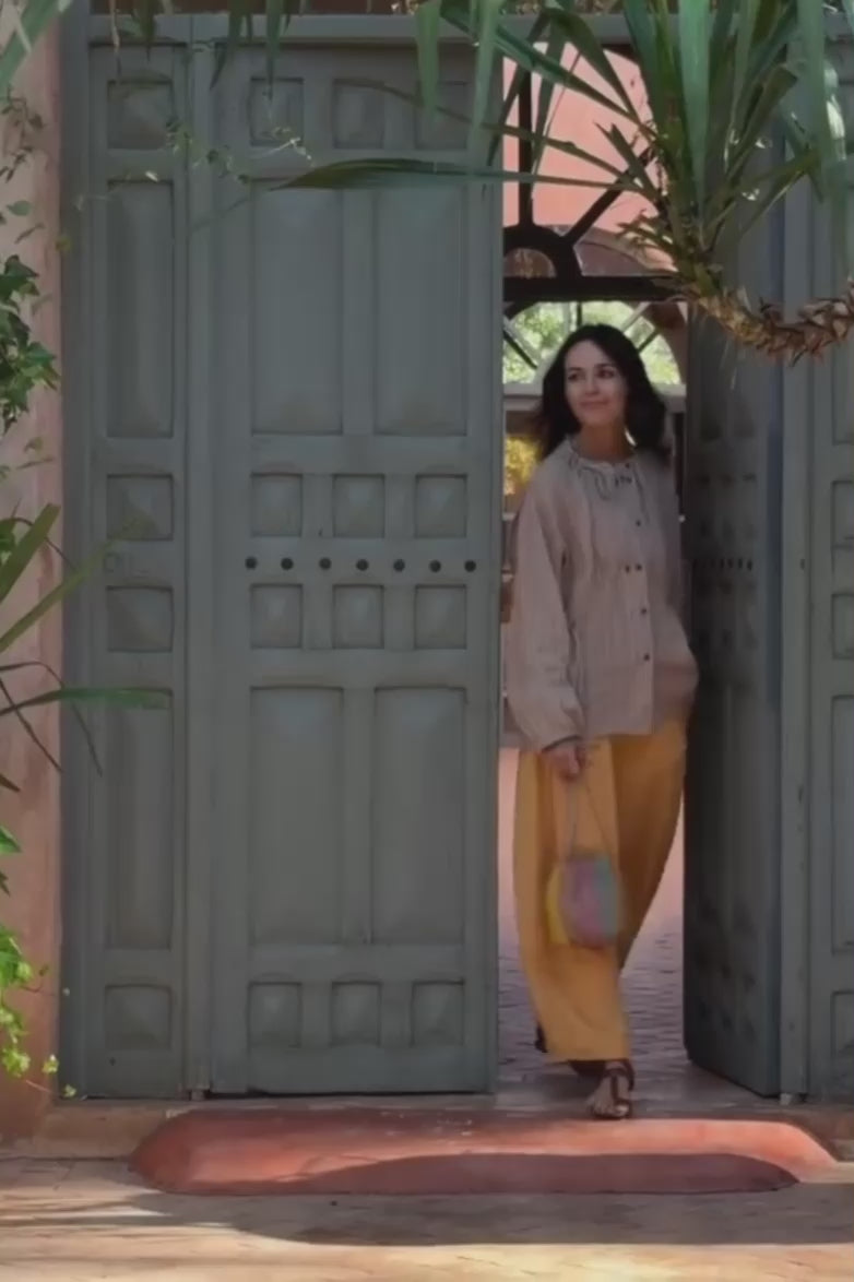 Sandalia con aplicaciones metálicas en oro envejecido para darle un estilo único con hebillas herrajes y remaches hipoalergénicos. Forro a tono de piel de cabra y suela de cuero de color natural certificada “handmade in Spain” con logo de Micuir grabado a fuego.